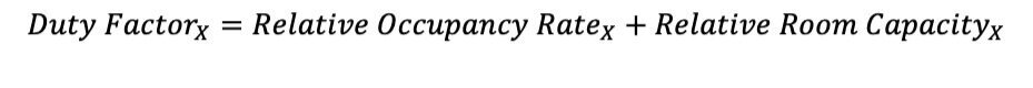 The equation is weighted differently for different industries. For a school, Relative Room Capacity is more significant because how much space students have in a classroom is a better indication of utilisation. Whereas in a shopping centre, Relative Occupancy gets a higher weight, because shopping centres are built to accommodate very large capacities and the number of visitors varies significantly from day-to-day.